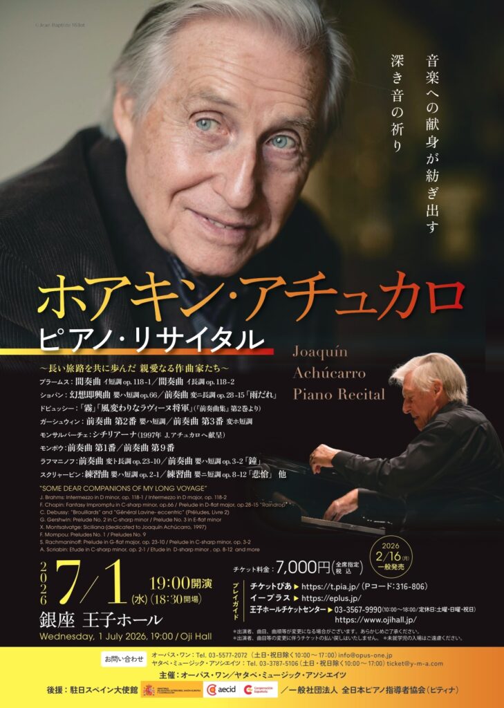 - シカゴ・サン・タイムズが「完璧なアーティスト」と評したとおり、ホアキン・アチュカロはその誰もが認める広範な活動により、国内外で高い評価を得てきた。スペイン・バスクのビルバオに生まれ、早くからスペイン、フランス、イタリア、スイスなどの国際コン